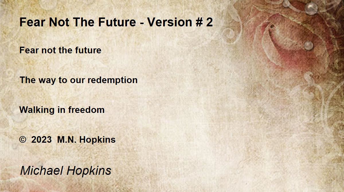 Fear Not The Future - Version # 2 Poem by Michael Hopkins