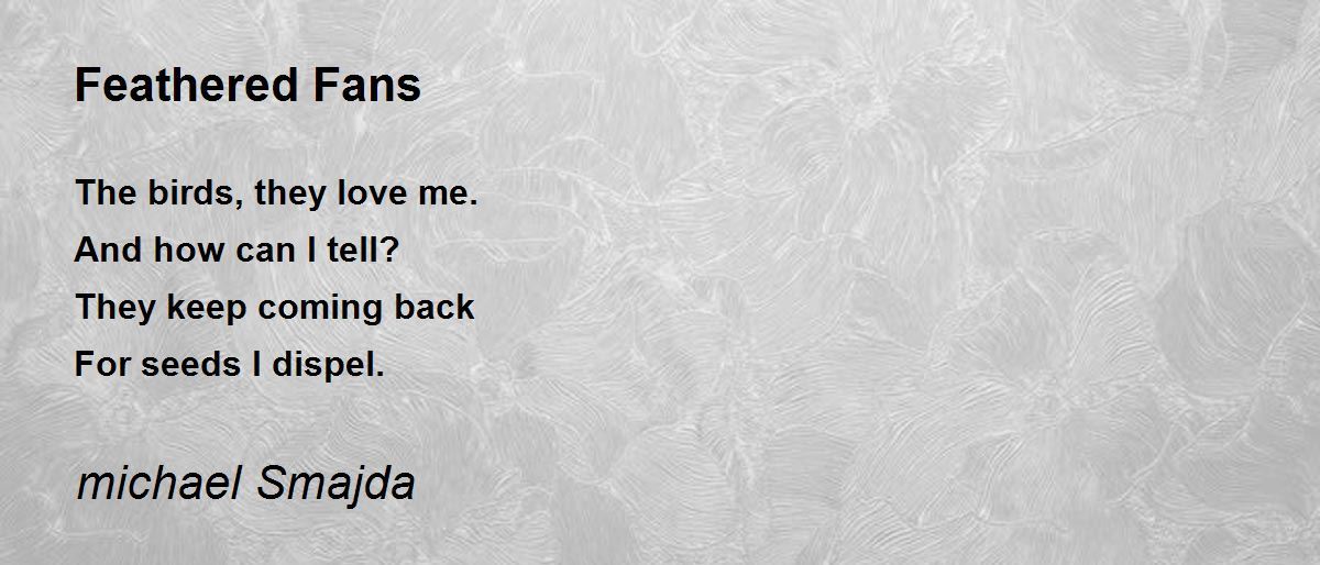 The birds, they love me. And how can I tell? They keep coming back For seeds I dispel.