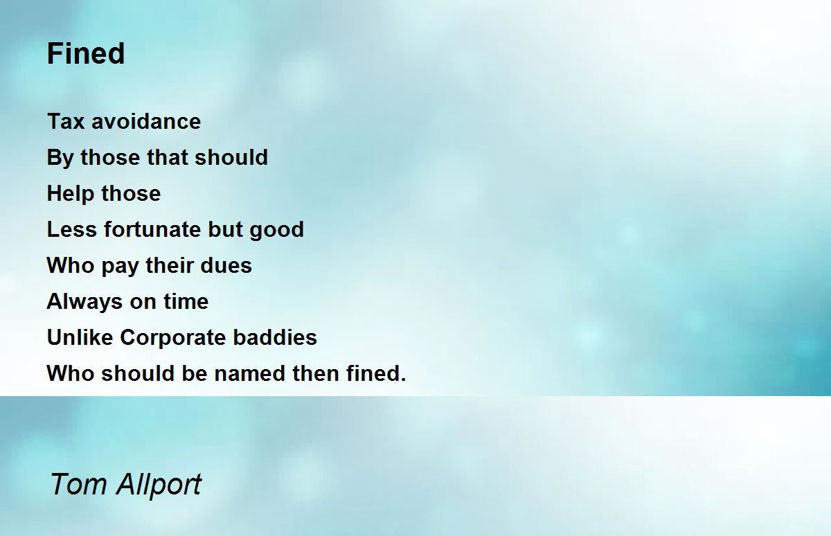 Less fortunate but good Who pay their dues Always on time.......touching expression with nice theme. Payment made in time avoids fine always. A beautiful poem on fine is well executed. Thanks for sharing.