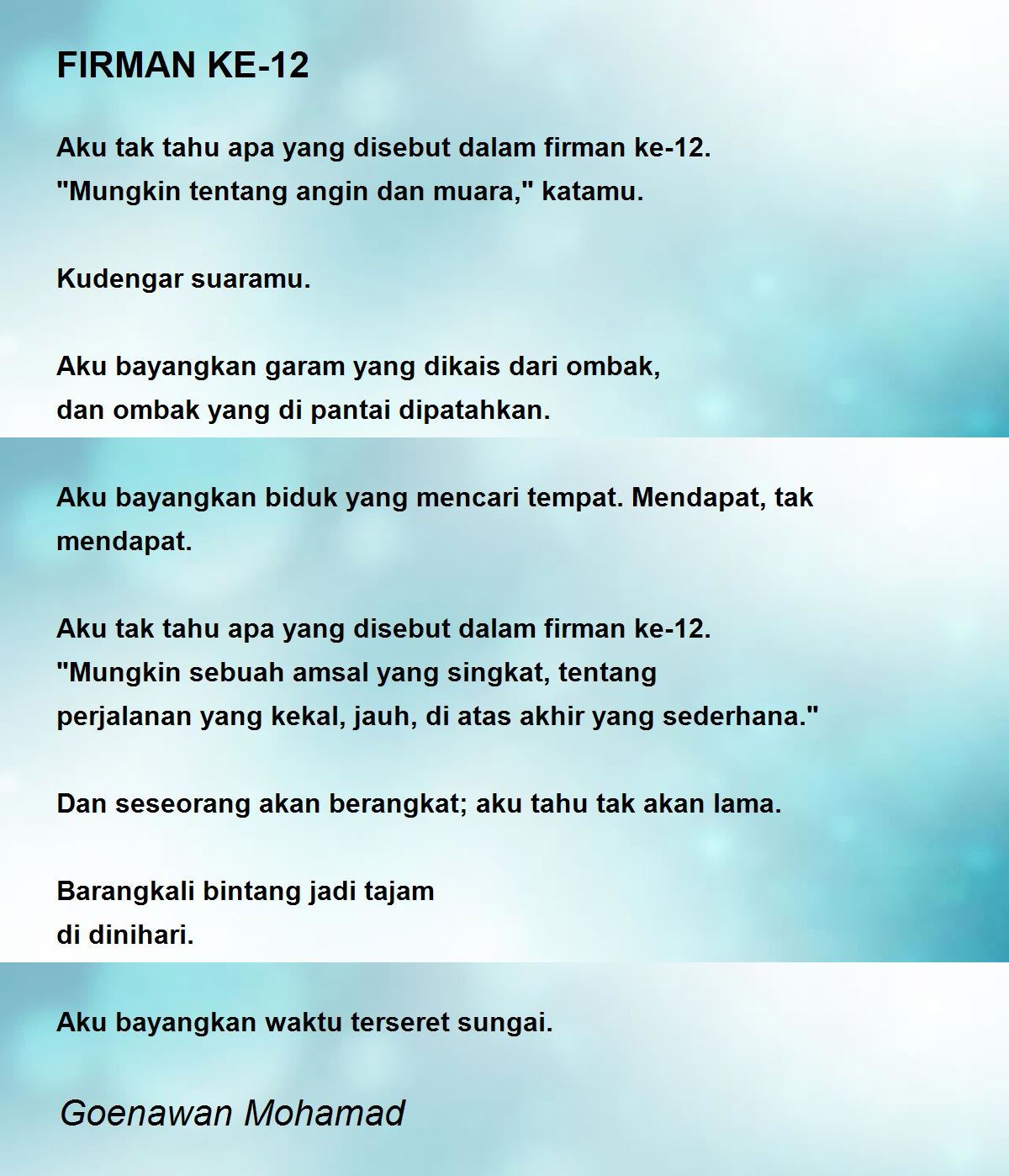 Aku tak tahu apa yang disebut dalam firman ke-12.