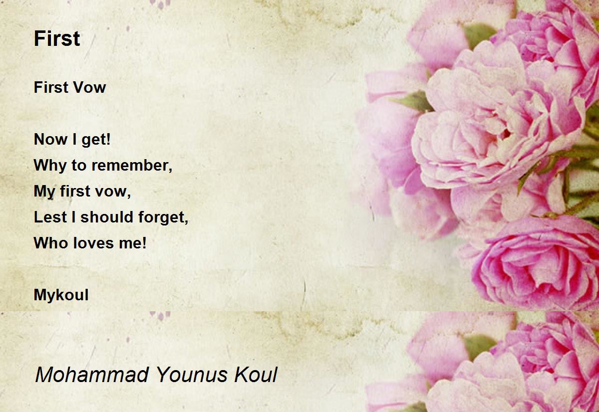 First Vow Now I get! Why to remember, My first vow, Lest I should forget, Who loves me! Mykoul