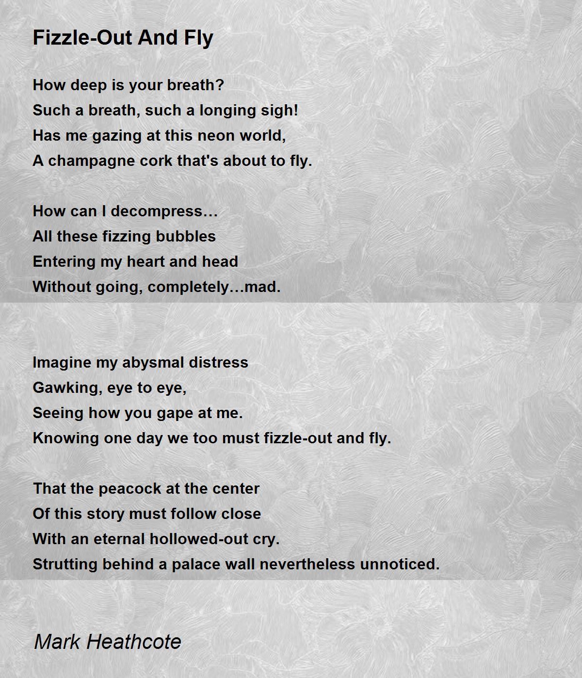 Knowing one day we too must fizzle-out and fly.