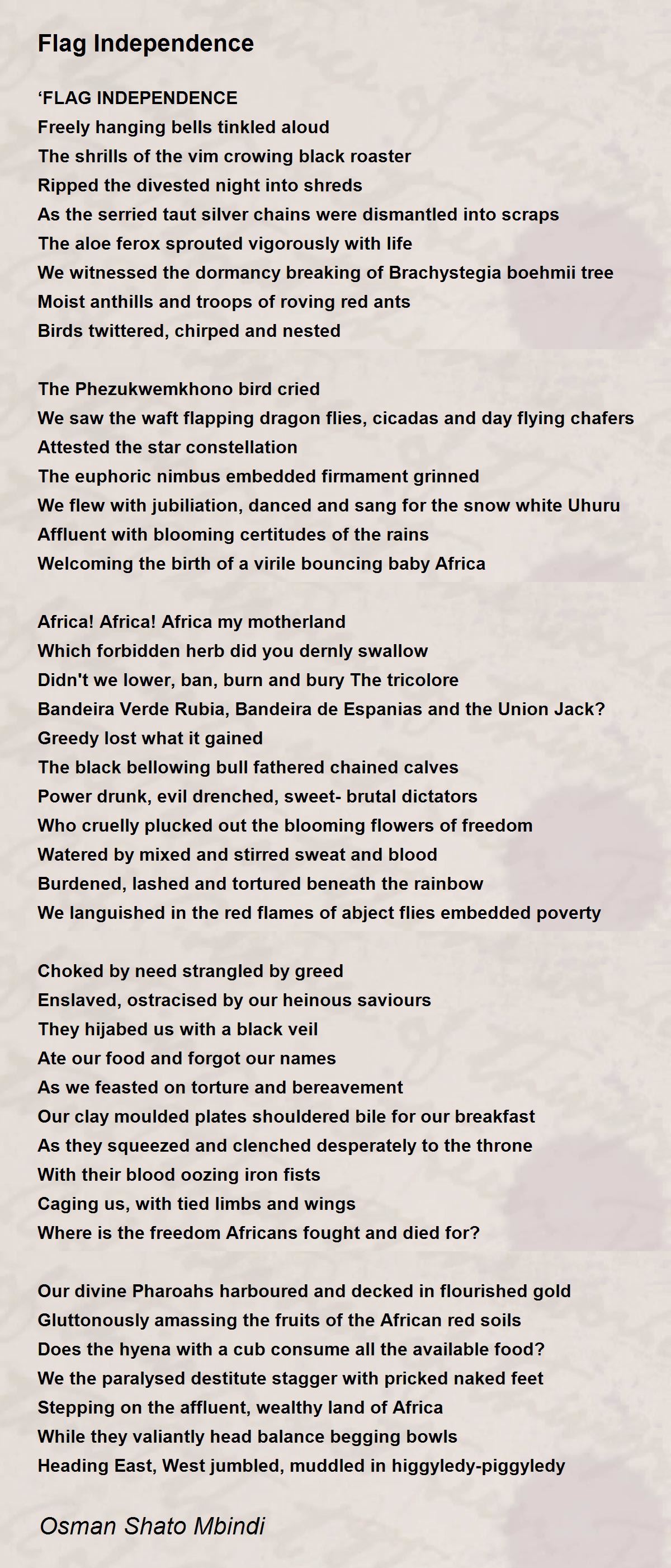 An insightful patriotic piece of poetry, well conceived and nicely brought forth with clarity of thought and mind. A beautiful creation. Thanks for sharing Osman.