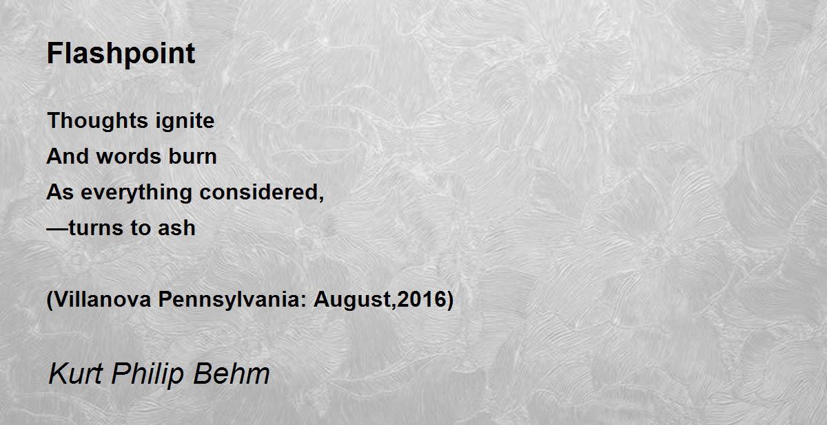 Thoughts ignite And words burn As everything considered, —turns to ash (Villanova Pennsylvania: August,2016)
