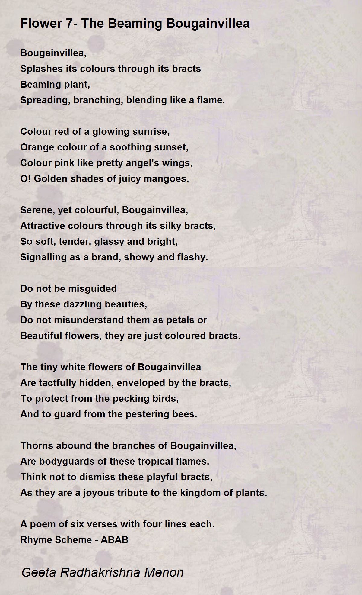 Bougainvilleas with its blooms in myriad attractive hues are pride of any garden. Google poem, Geeta. I am sure I have read the original poem. Thank you for reposting it.