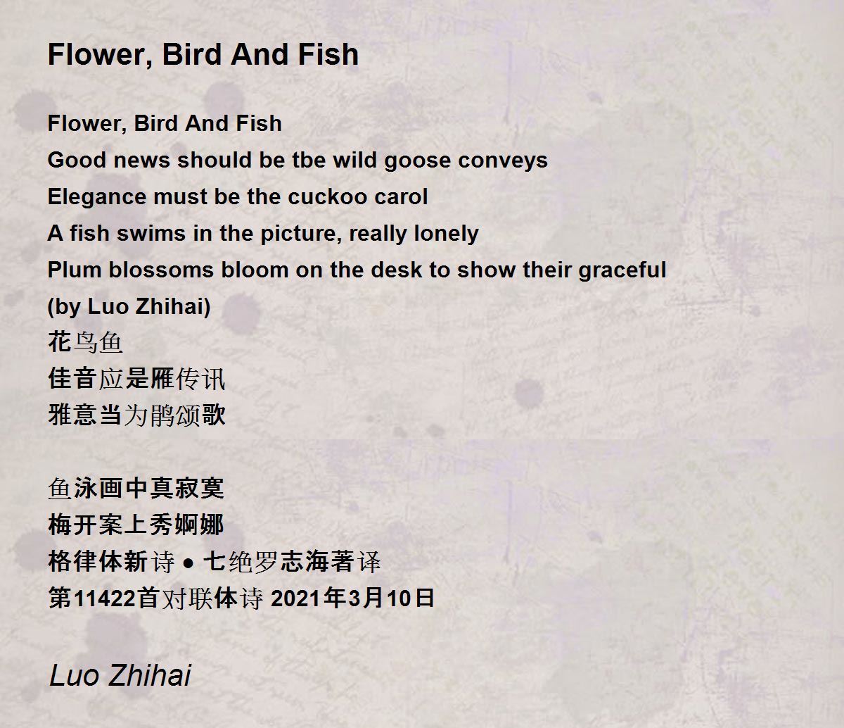 第11422首对联体诗 2021年3月10日