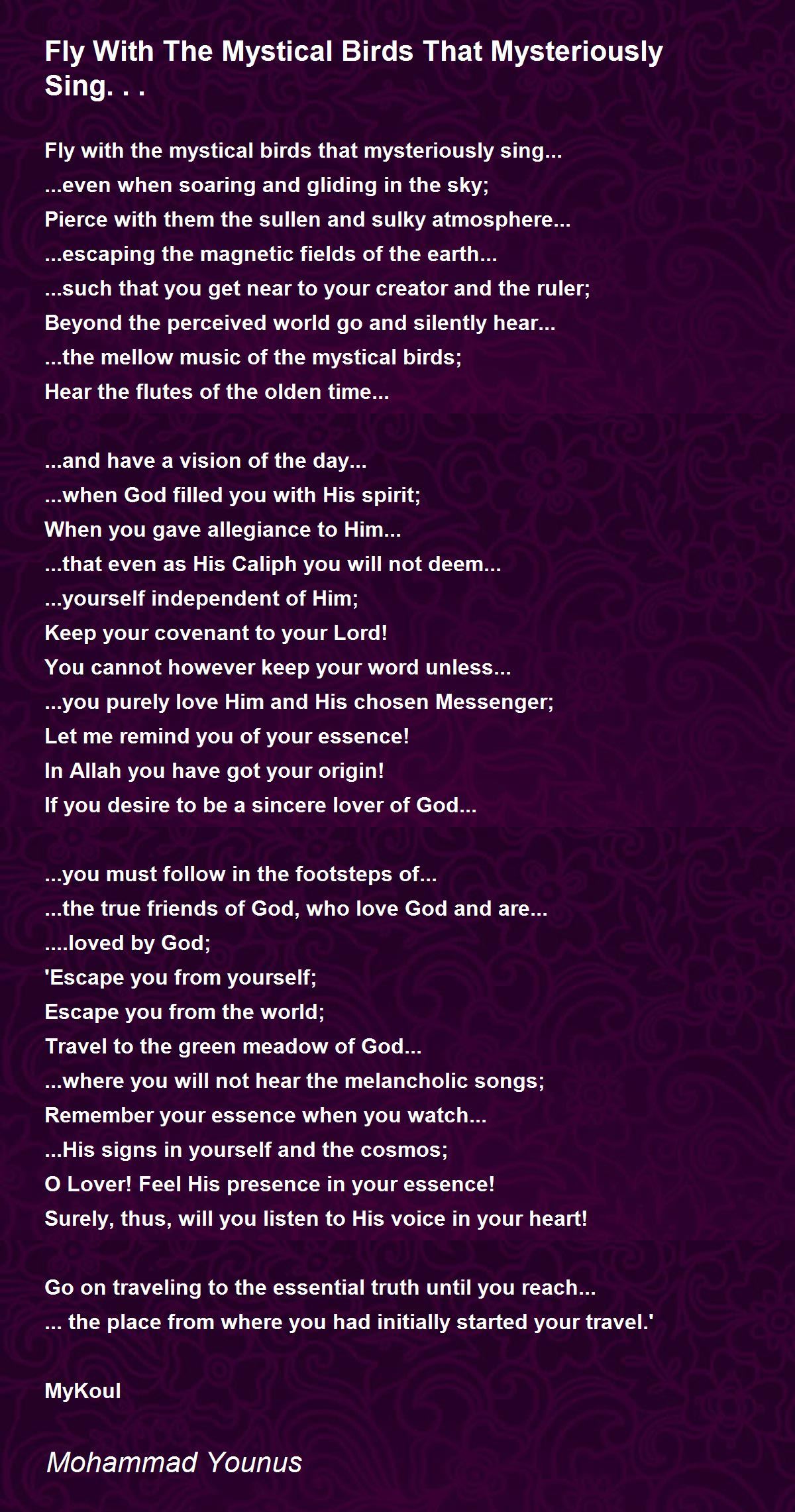 Fly with the mystical birds that mysteriously sing...