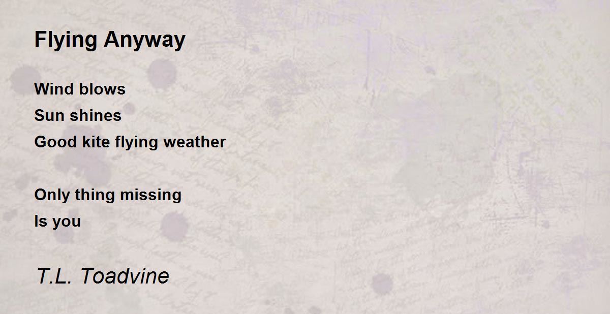 Wind blows Sun shines Good kite flying weather Only thing missing Is you
