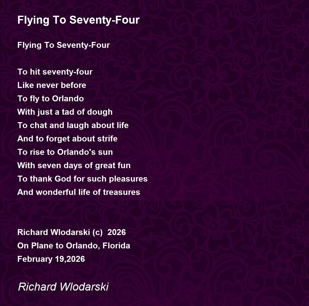 Flying To Seventy-Four Poem by Richard Wlodarski