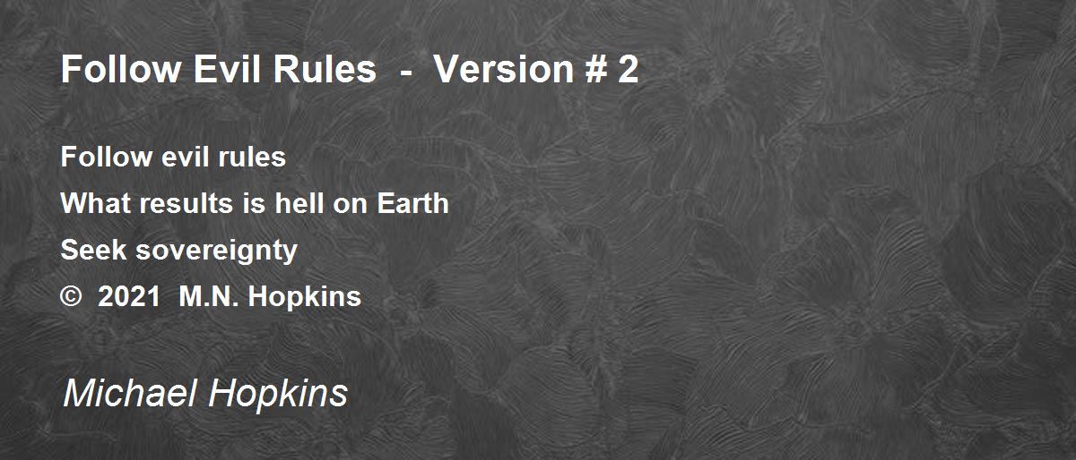 Follow evil rulesWhat results is hell on EarthSeek sovereignty© 2021 M.N. Hopkins