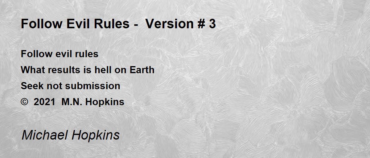 Follow evil rulesWhat results is hell on EarthSeek not submission© 2021 M.N. Hopkins
