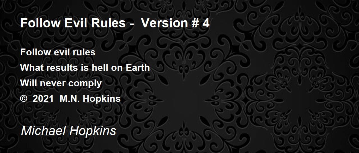 Follow evil rulesWhat results is hell on EarthWill never comply© 2021 M.N. Hopkins