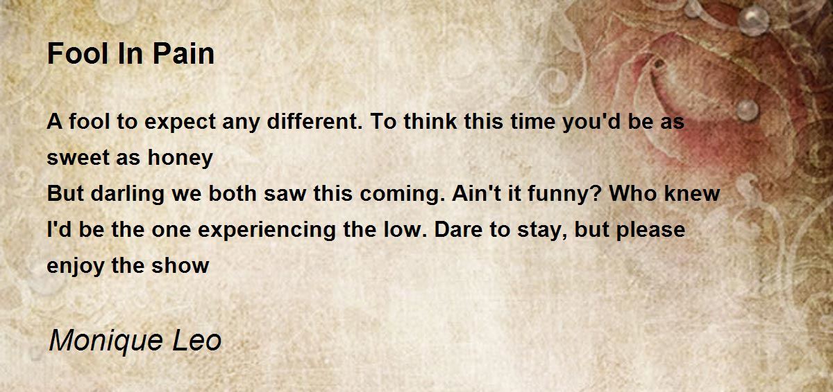 A fool to expect any different. To think this time you'd be as sweet as honey