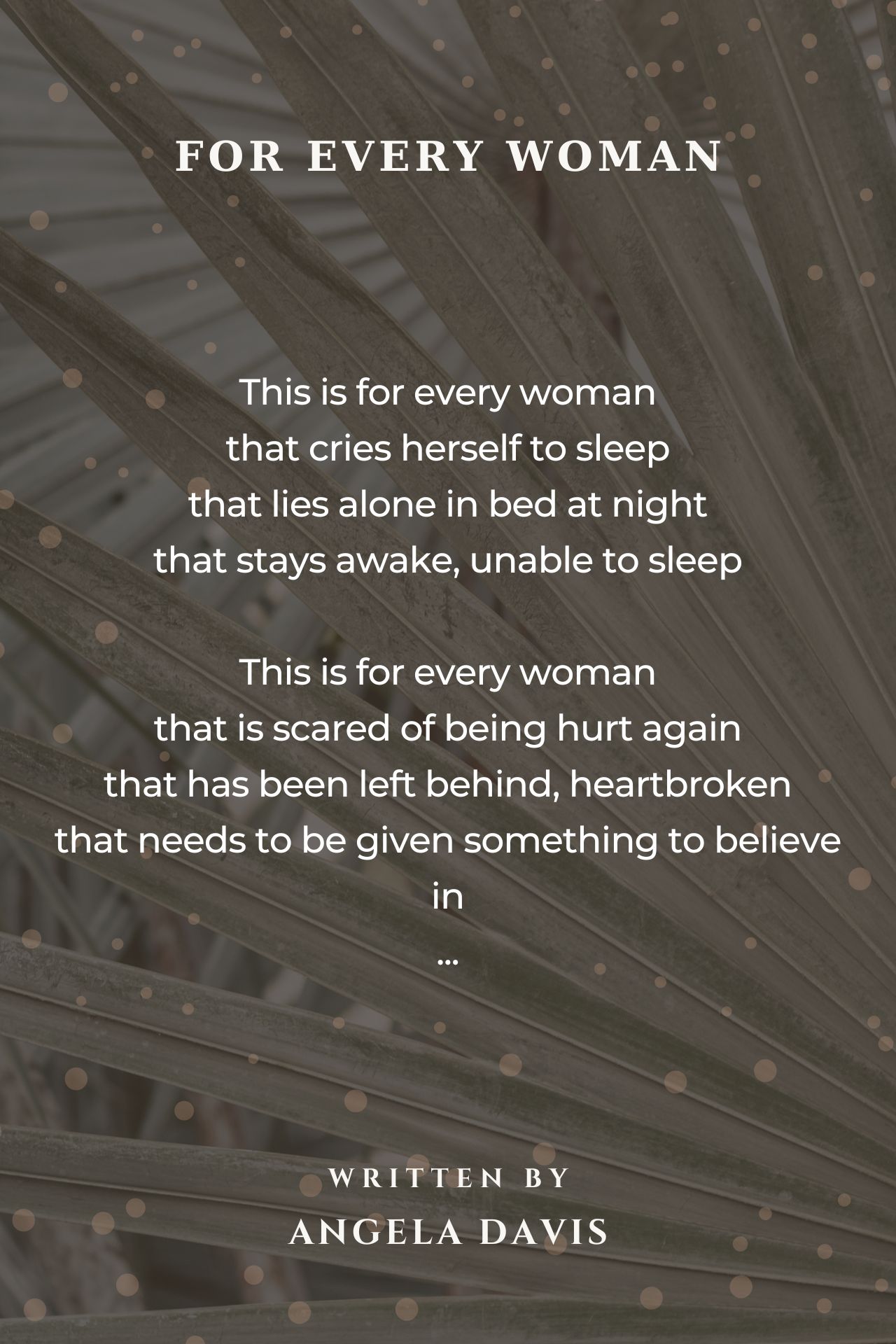 This wonderfully empowering, insprational poem truly is for Every Woman. Every Woman should read it, and feel its message.