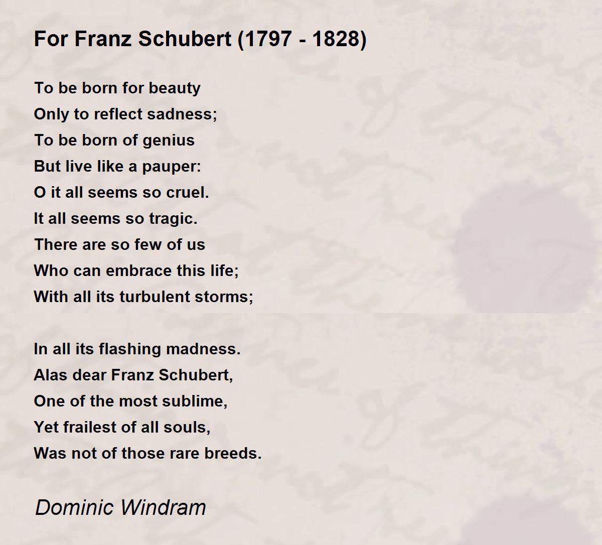 Alas dear Franz Schubert,