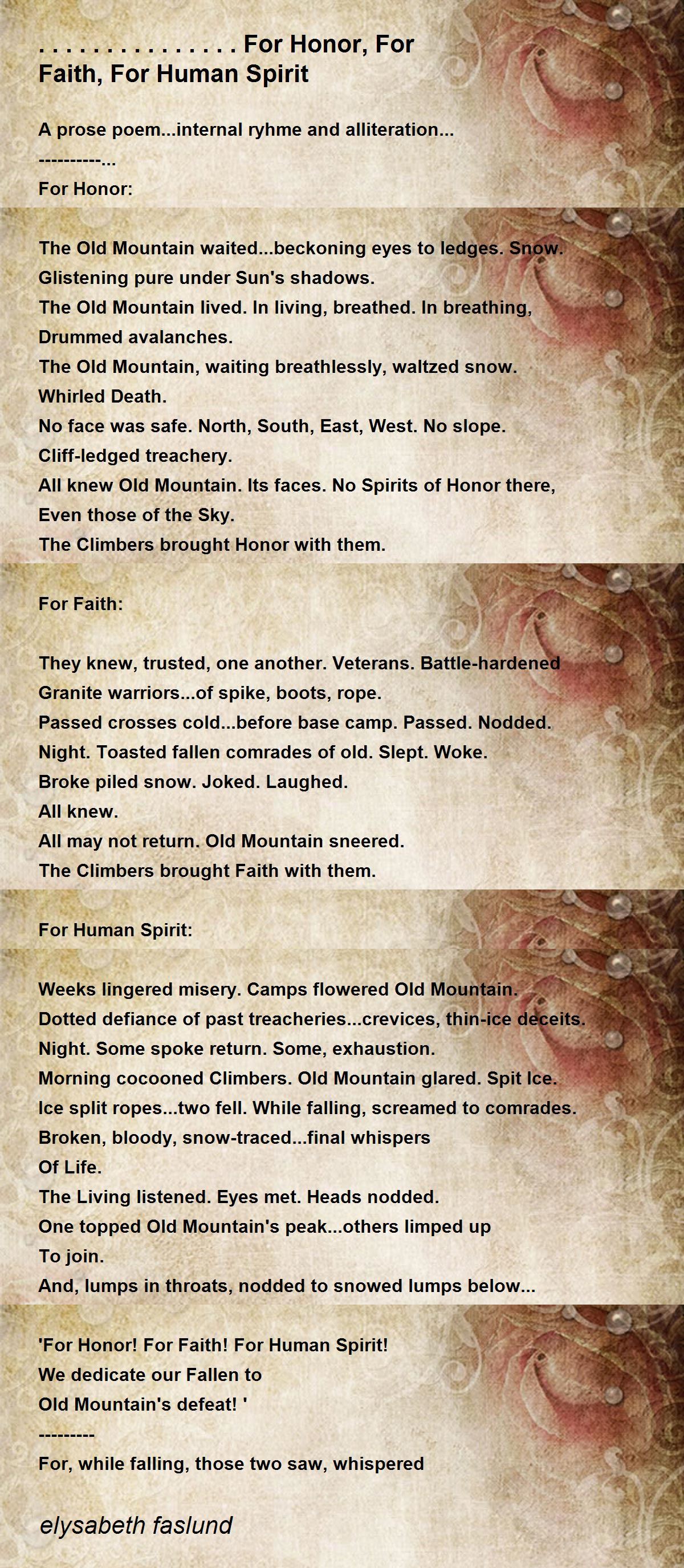 All knew Old Mountain. Its faces. No Spirits of Honor there,