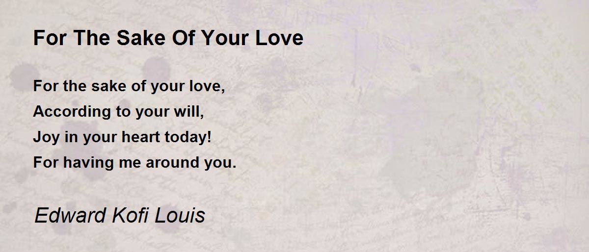 For the sake of your love, According to your will, Joy in your heart today! For having me around you.