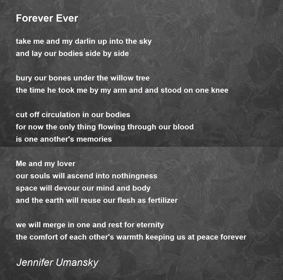 the comfort of each other's warmth keeping us at peace forever
