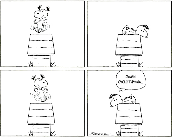 I just came across 'cyclothymia',