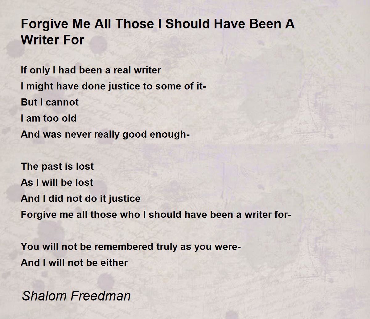 Forgive me all those who I should have been a writer for-