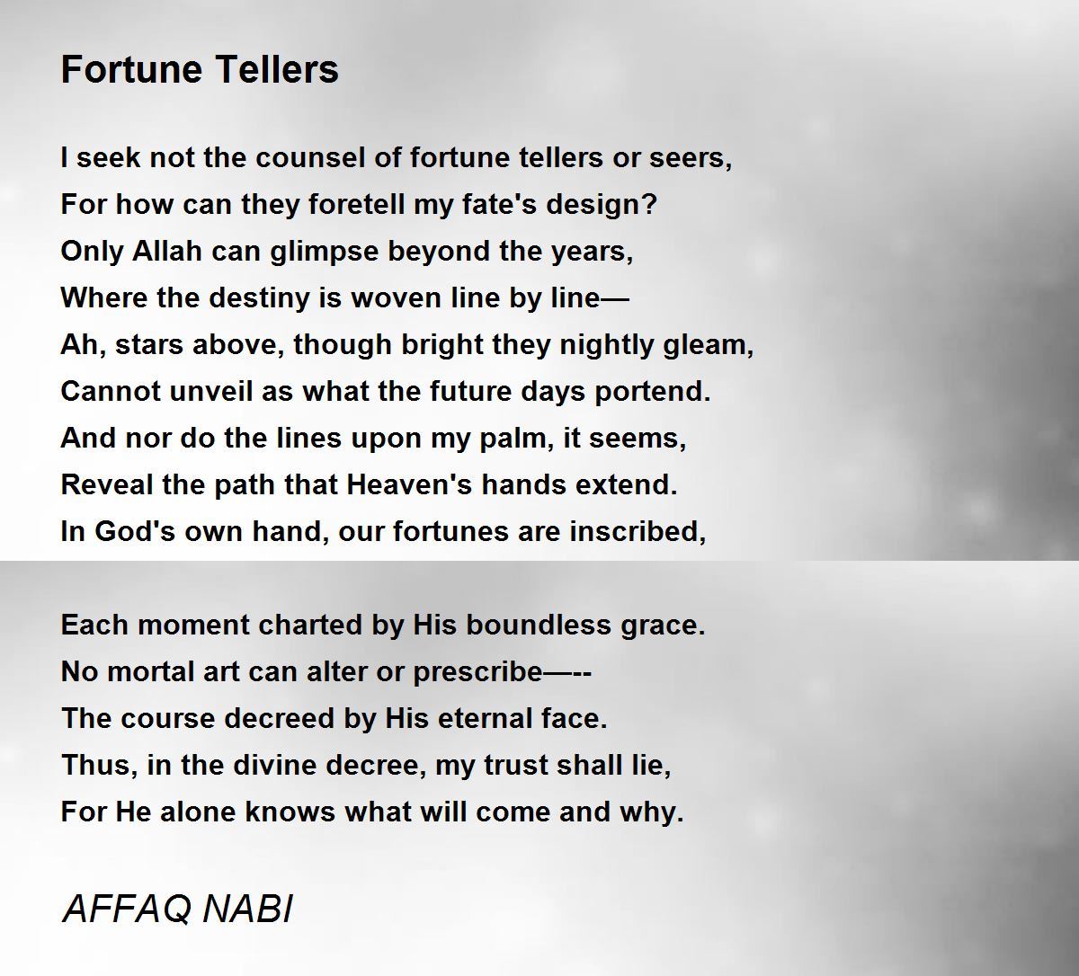 In God's own hand, our fortunes are inscribed,