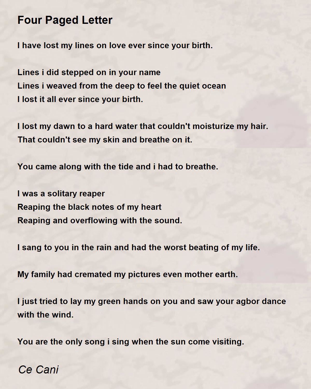 I sang to you in the rain and had the worst beating of my life.