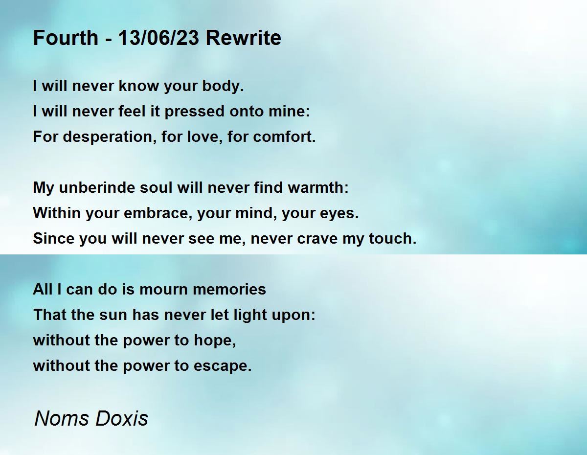 Since you will never see me, never crave my touch.