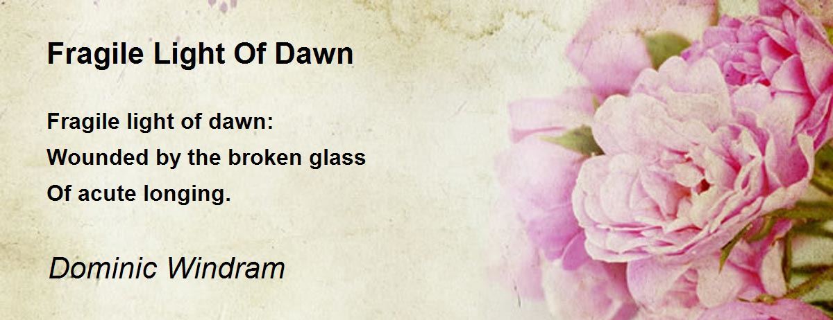 Fragile light of dawn: Wounded by the broken glass Of acute longing.