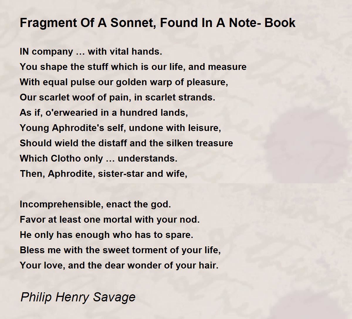 Our scarlet woof of pain, in scarlet strands.
