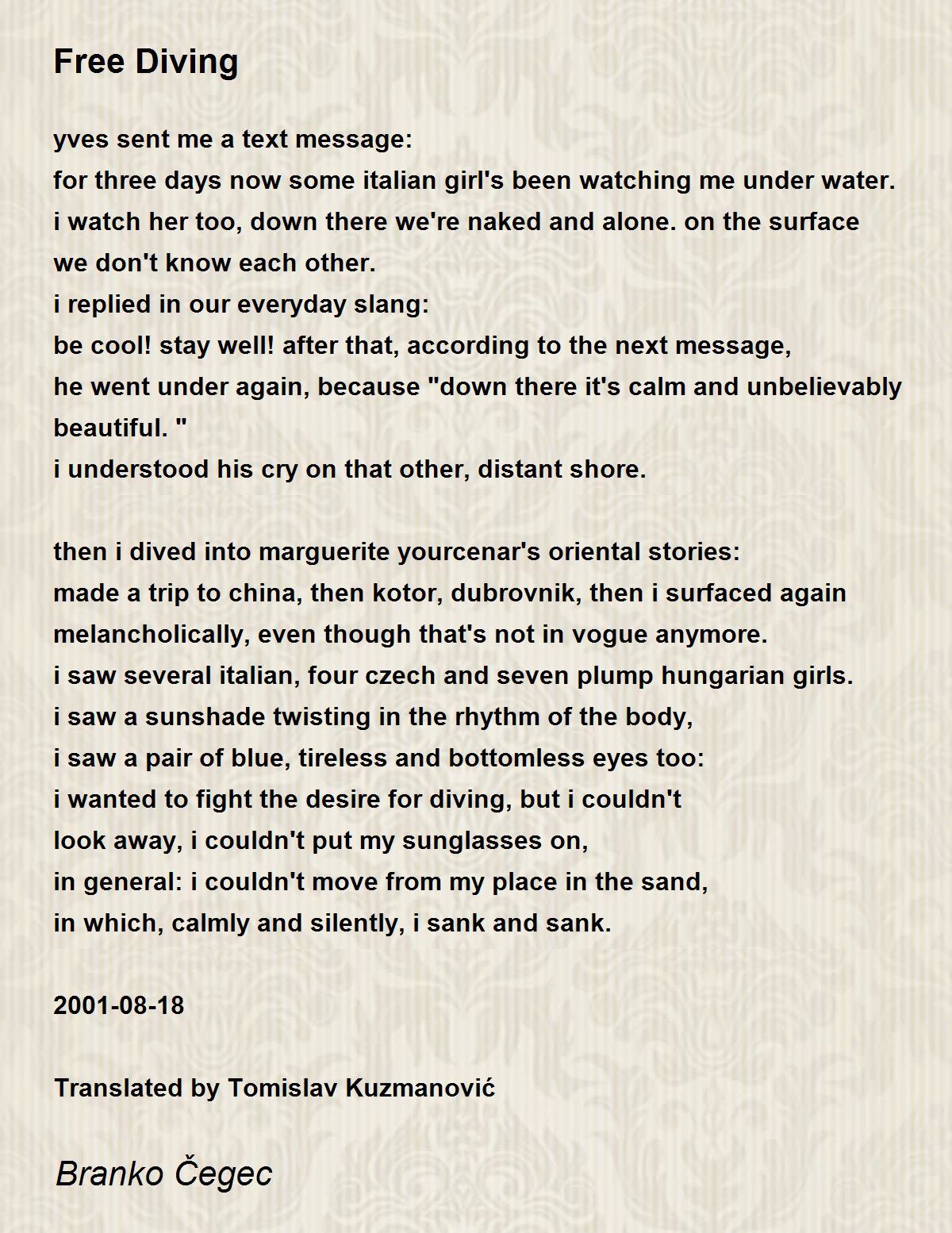 he went under again, because "down there it's calm and unbelievably beautiful."