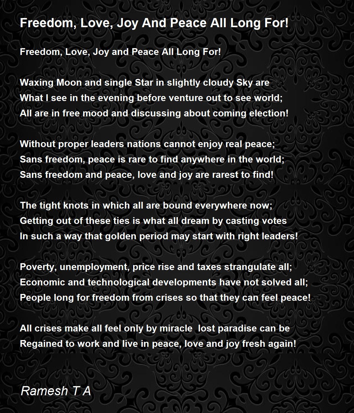 Sans freedom and peace, love and joy are rarest to find!