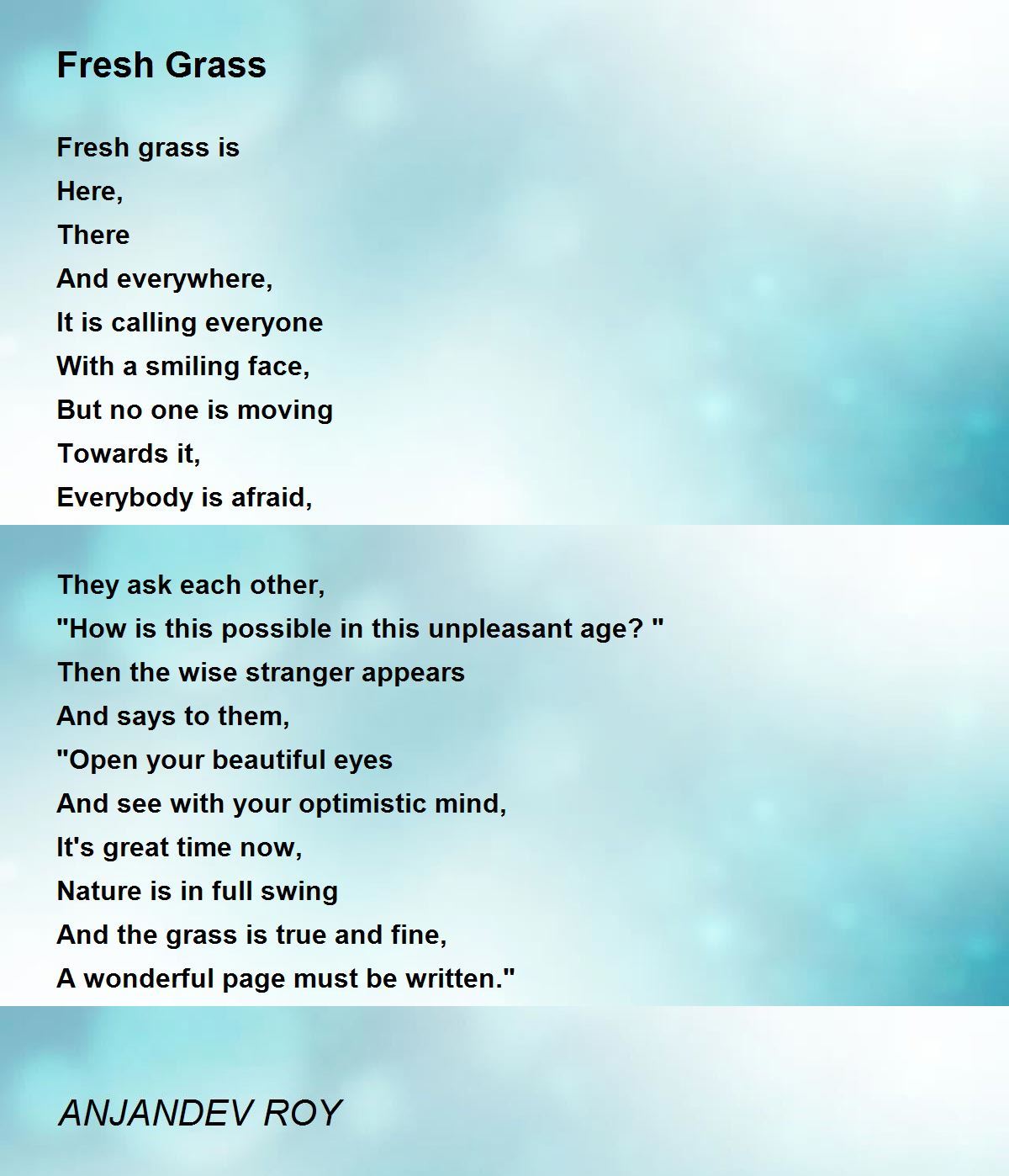 There are many good things around us to observe, such a fresh grass, if we will but open our eyes. Thanks for posting this!