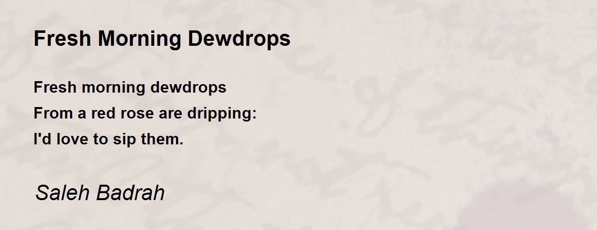 Fresh morning dewdrops From a red rose are dripping: I'd love to sip them.