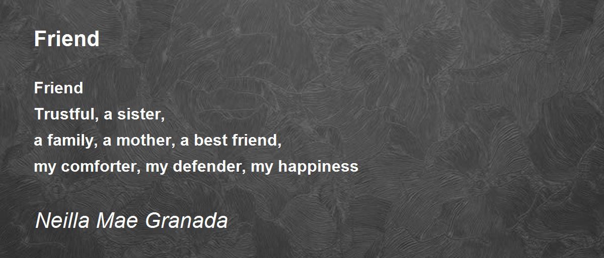 Friend Trustful, a sister, a family, a mother, a best friend, my comforter, my defender, my happiness