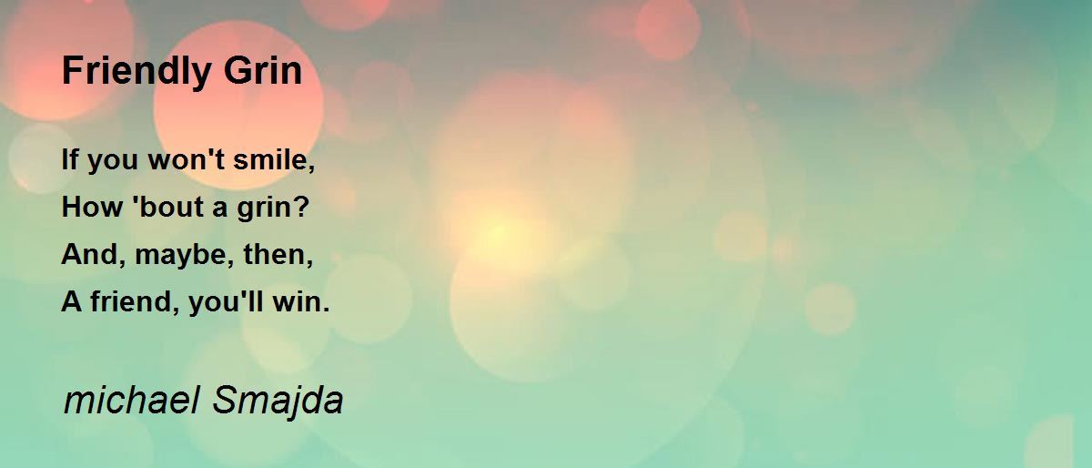 If you won't smile, How 'bout a grin? And, maybe, then, A friend, you'll win.