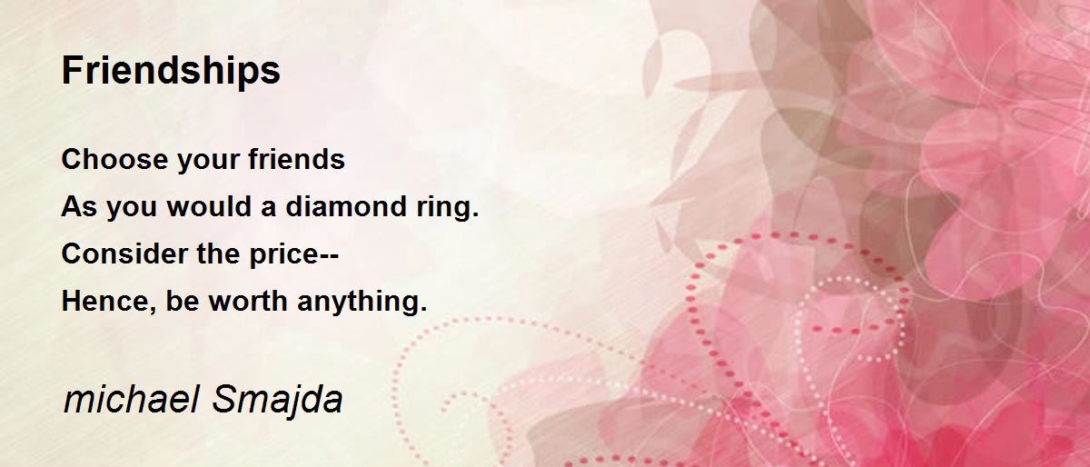 Choose your friends As you would a diamond ring. Consider the price-- Hence, be worth anything.