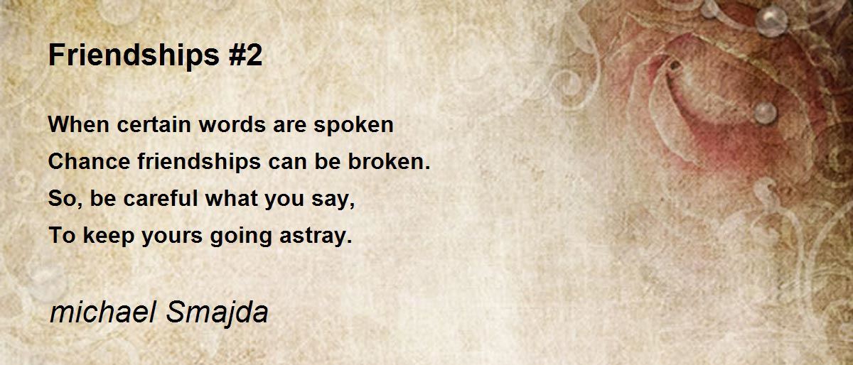 When certain words are spoken Chance friendships can be broken. So, be careful what you say, To keep yours going astray.
