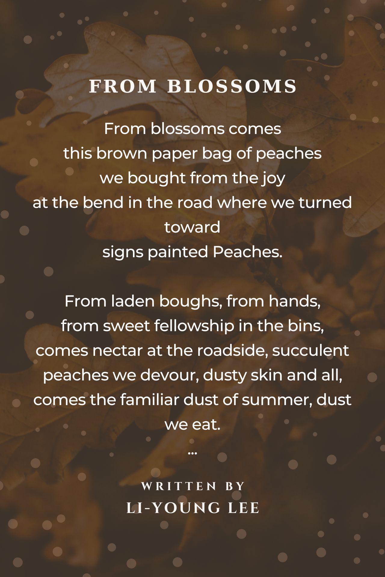 to carry within us an orchard, to eat