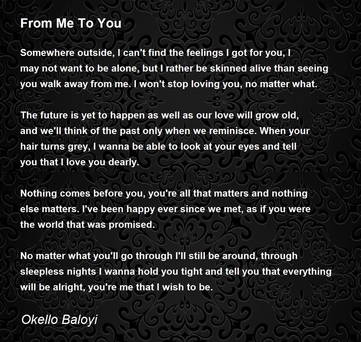 Nothing comes before you, you're all that matters and nothing else matters. I've been happy ever since we met, as if you were the world that was promised.