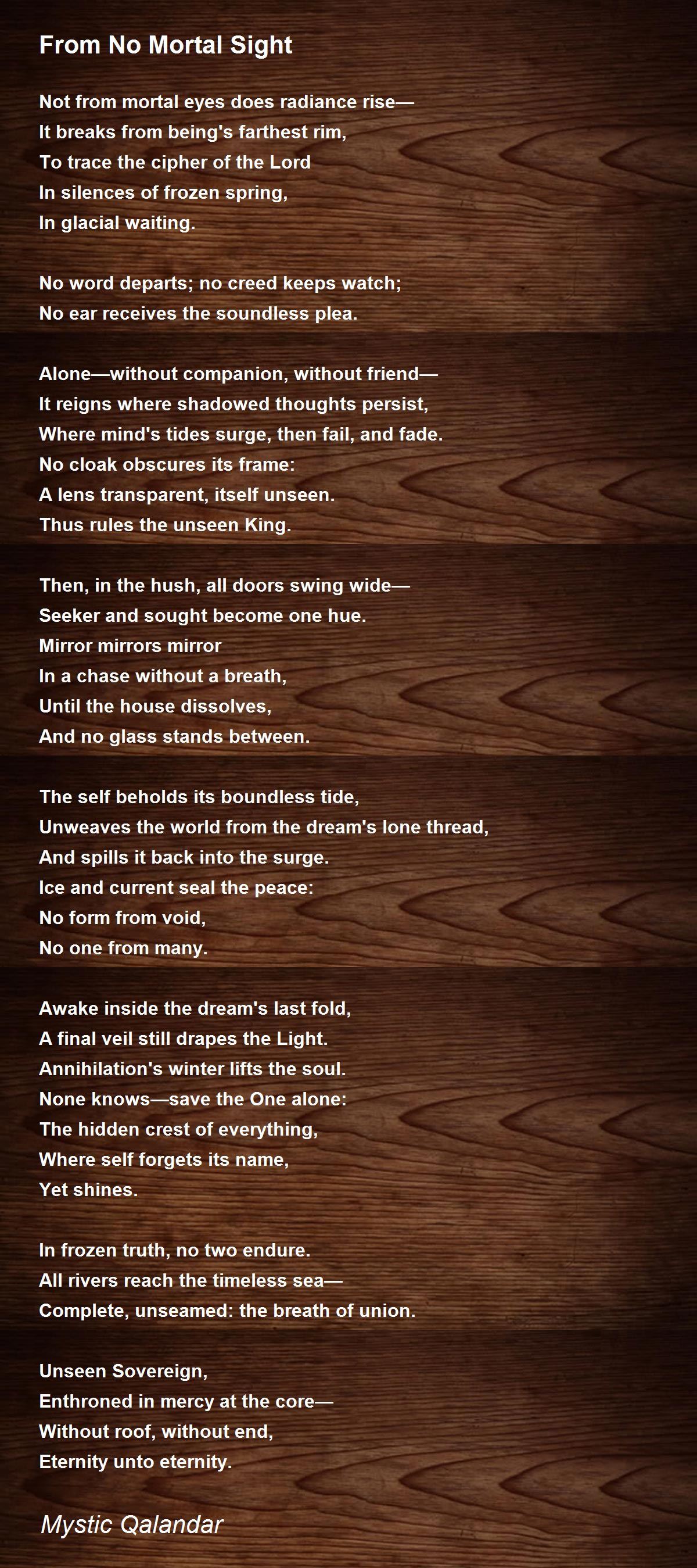 Not from mortal eyes does radiance rise—