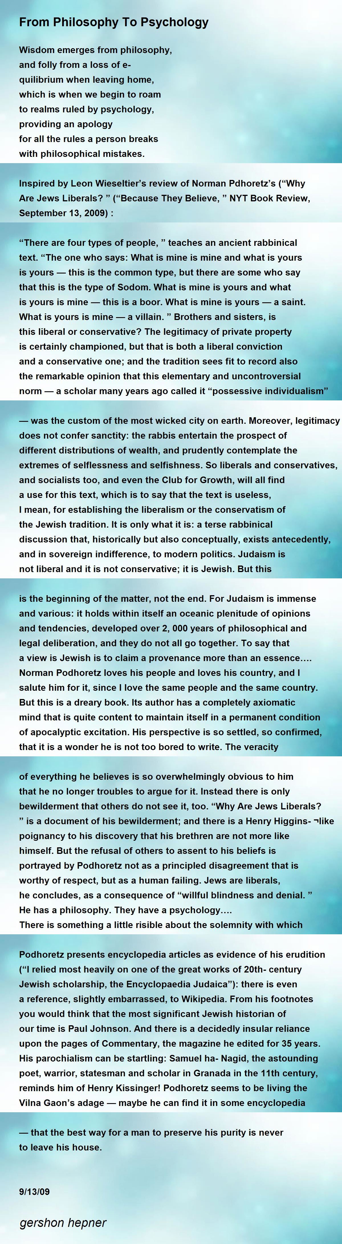 Inspired by Leon Wieseltier’s review of Norman Pdhoretz’s (“Why Are Jews Liberals? ” (“Because They Believe, ” NYT Book Review, September 13,2009) :