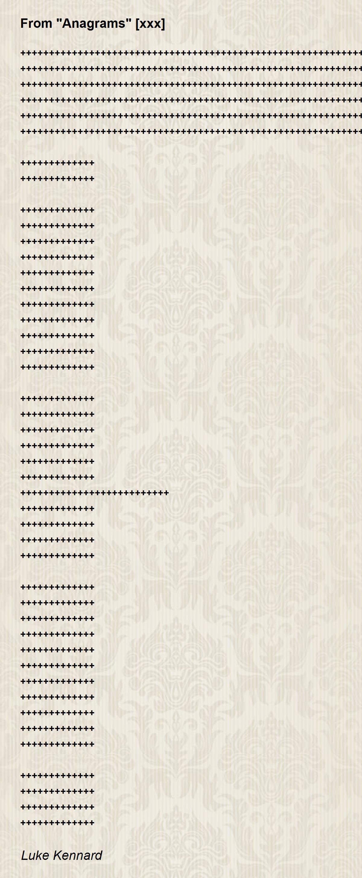 The show remains, unshot. Adah rants. Cain bares his teeth. Starvation: a state without border. World without means. Haha. Who'd have thought. Total inter- regnum. Theogony. Thrombotic idea. (Debt flogs verb.) A retro daydream: I hid under the hollyhock. The prohibition-era nut cuffed me. Shoddy fate, old horse. To genuflect? Ohhhhhhhhh no ... Vulture count: Then. Then. Then. Then.