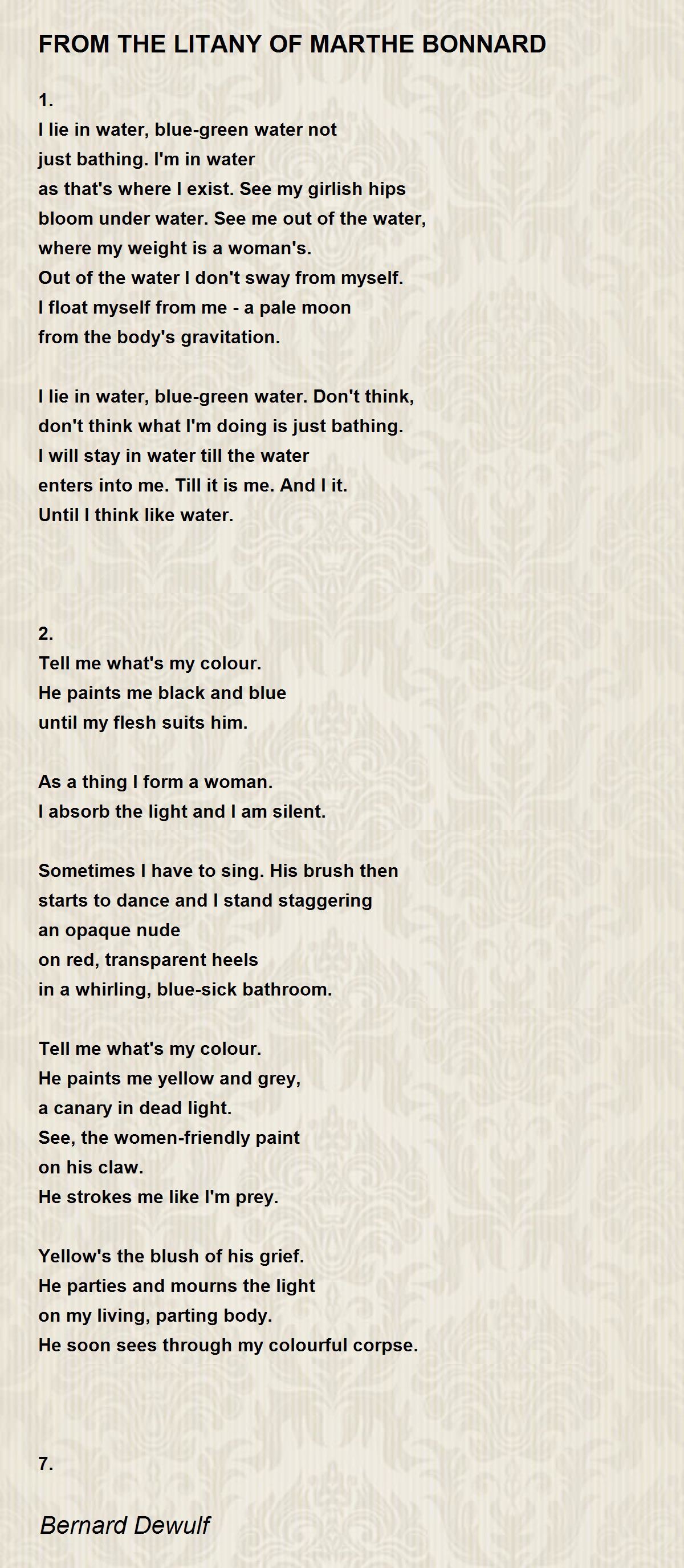 I lie in water, water pale as death.