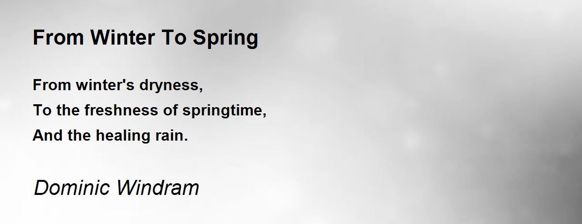 From winter's dryness, To the freshness of springtime, And the healing rain.