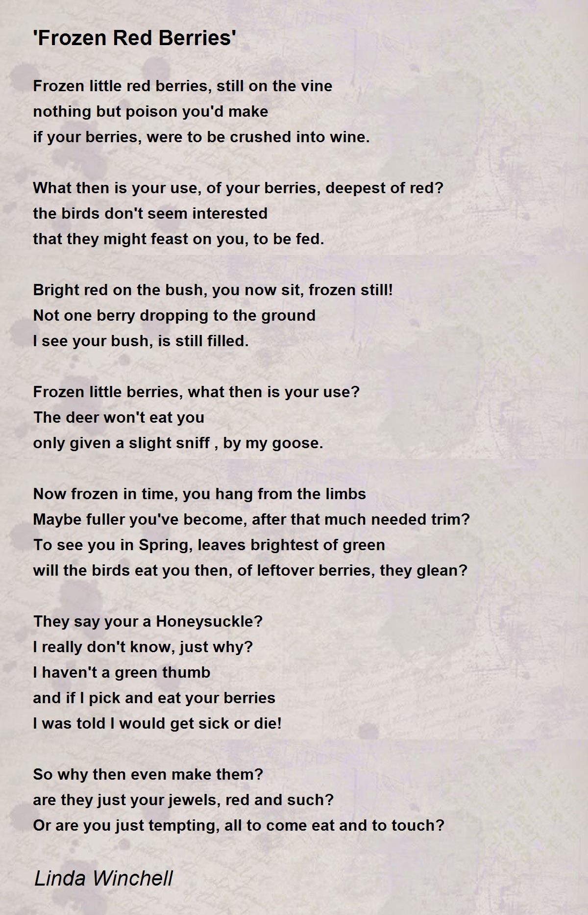 these frozen berries as bitter as they may be is what makes your poetry another great. ten