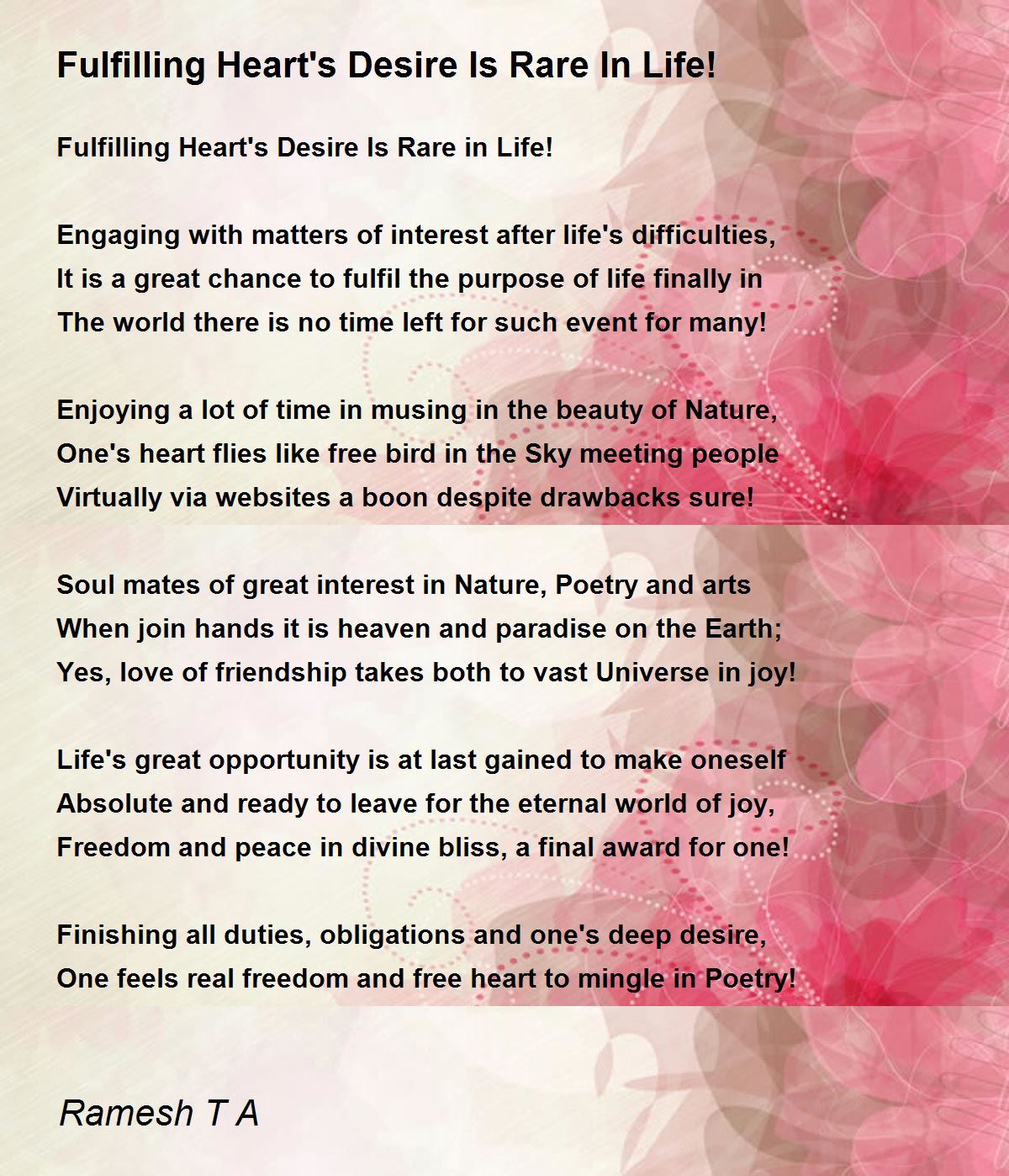 Finishing all duties, obligations and one's deep desire, One feels real freedom and free heart to mingle in Poetry!