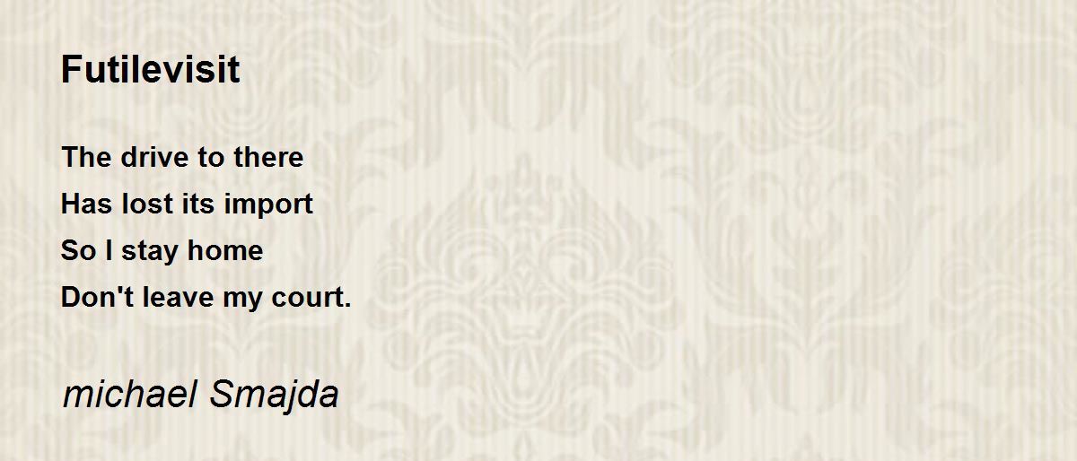 The drive to there Has lost its import So I stay home Don't leave my court.