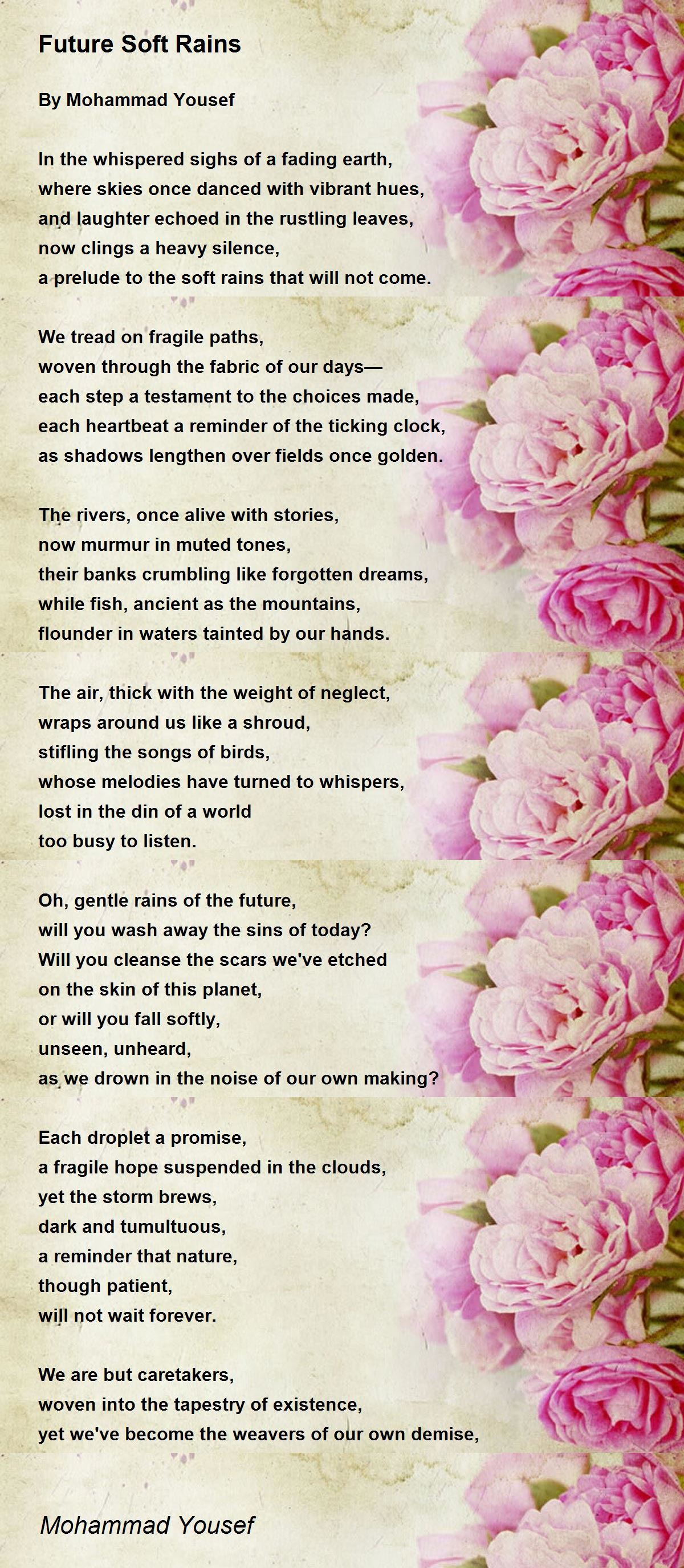 Oh, gentle rains of the future,
