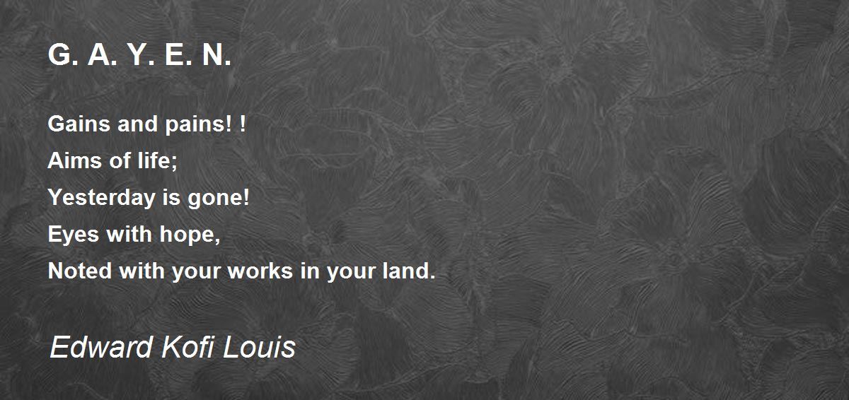 Gains and pains! ! Aims of life; Yesterday is gone! Eyes with hope, Noted with your works in your land.