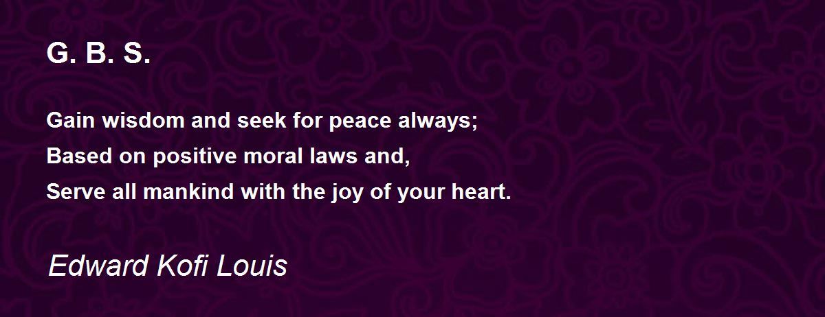 Gain wisdom and seek for peace always; Based on positive moral laws and, Serve all mankind with the joy of your heart.